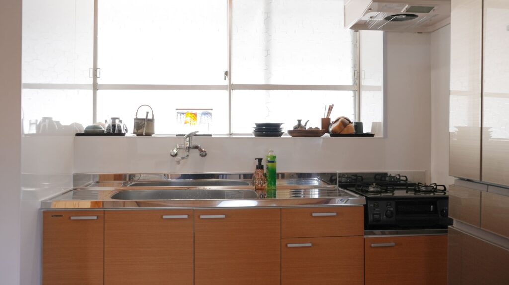 ガスコンロ、広々ととしたシンクのあるキッチンは、新しく清潔感があります。