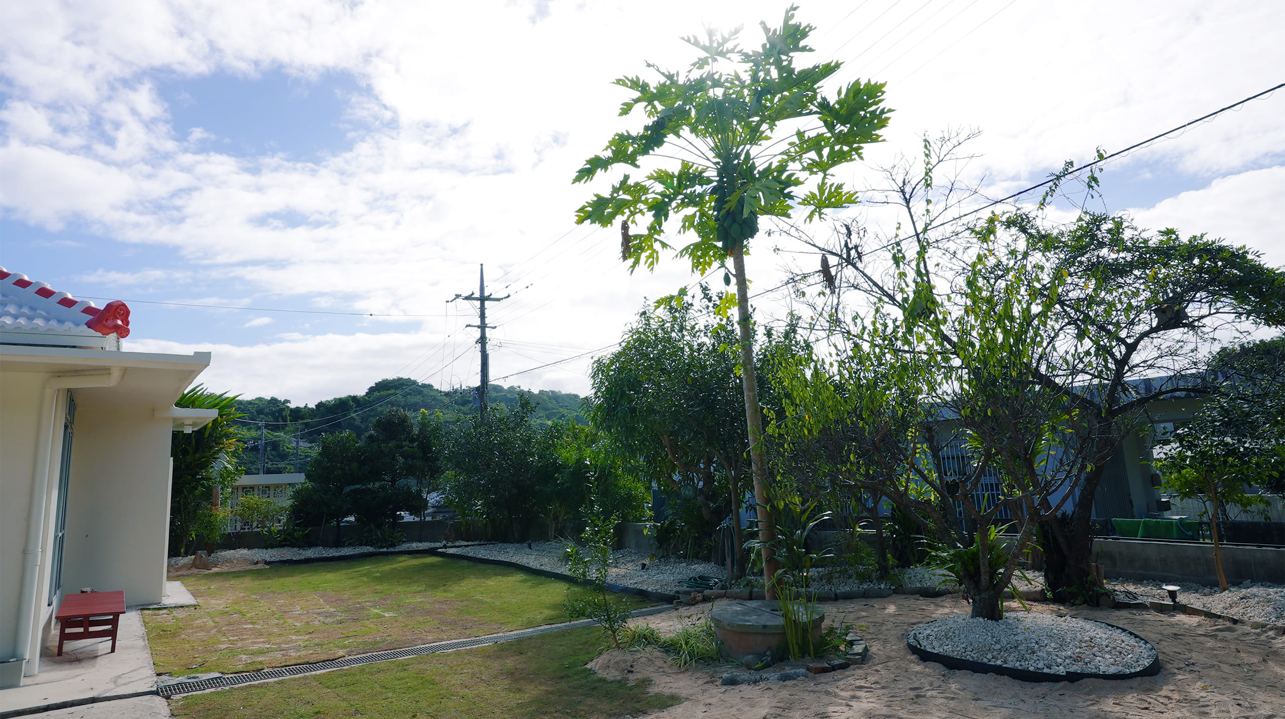 宿の庭には、沖縄の太陽をたっぷり浴びて育つ無農薬の薬草と香り豊かな果実が季節ごとに実ります。月桃、長命草、ウコン、フーチバー(よもぎ)、クワンソウ――古くから島の人々の健康を支えてきた薬草たち。 さらに、パパイヤやシークヮーサー、イヌビワなどの南国果実も自然のままにのびのびと育っています。 摘みたての葉をスムージーにしたり、果実を料理やドリンクに添えたり。食べる・香る・感じるという五感で味わう癒しの体験をお楽しみください。