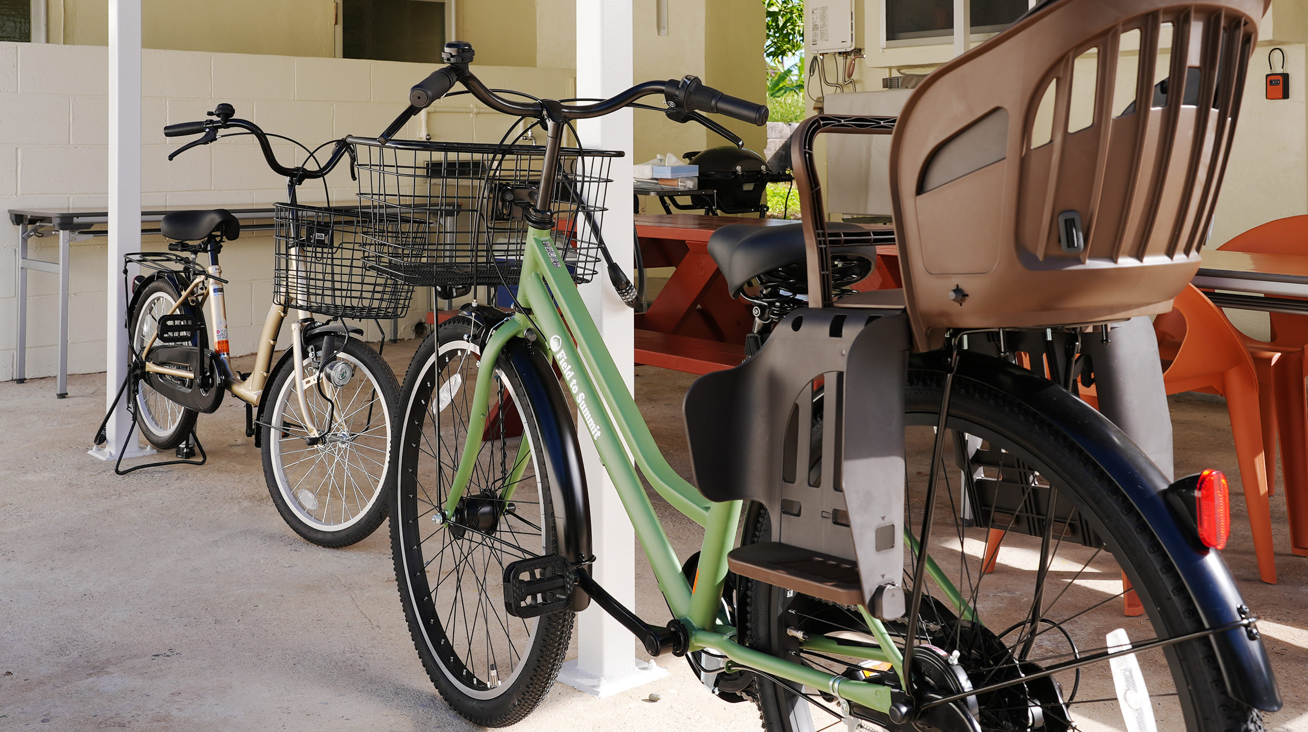 BBQセットを設置。照明もあるので昼・夜BBQも