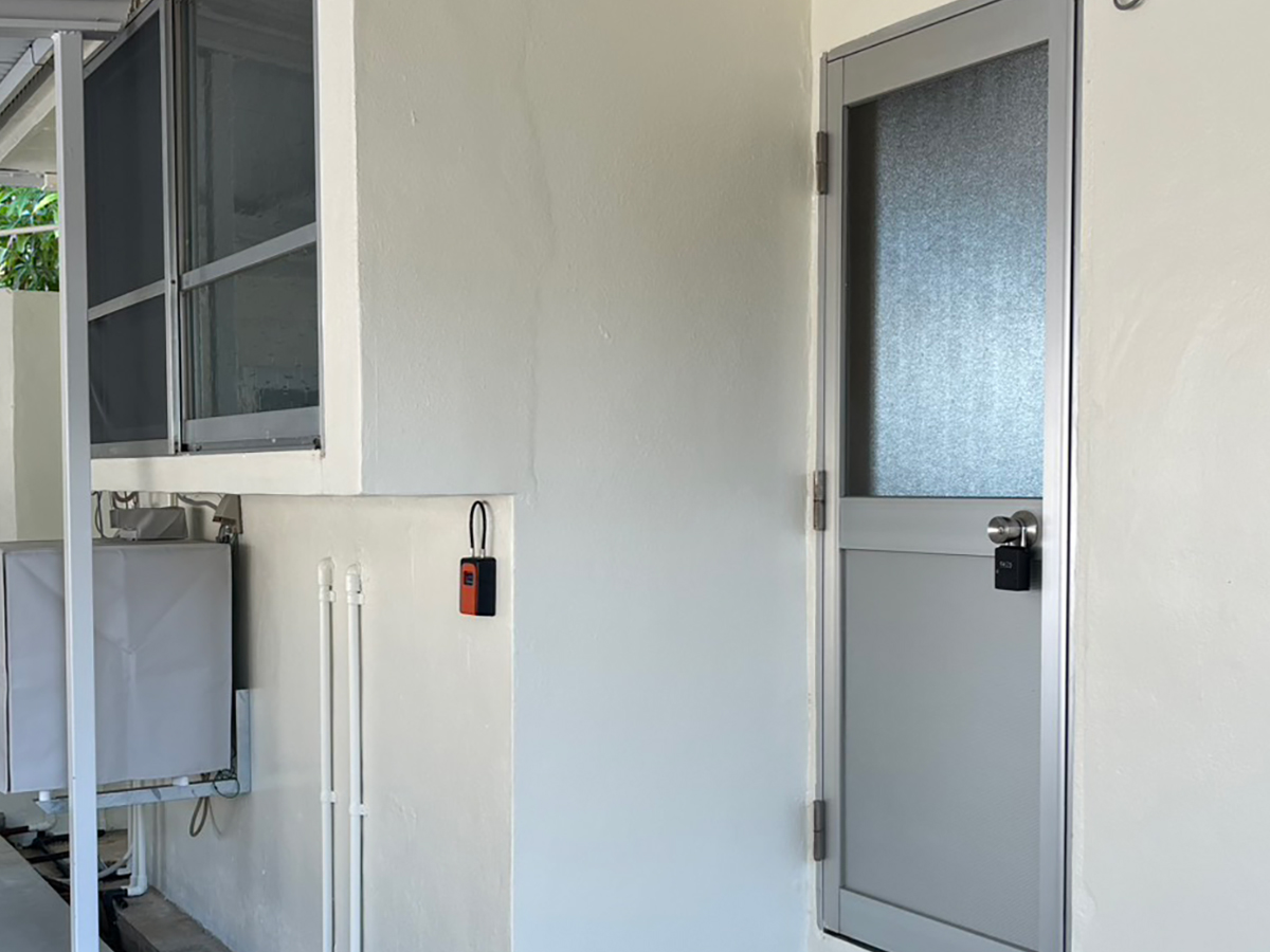 裏のガレージのキーボックスに暗証番号を入力(チェックイン15:00〜)